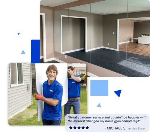 You can, but we don’t recommend it. A 4 × 6 ft mirror weighs ~75 lb and requires two installers plus professional glass‑handling suction cups for safe placement. Let’s just say no one has ever regretted having us do the installation.